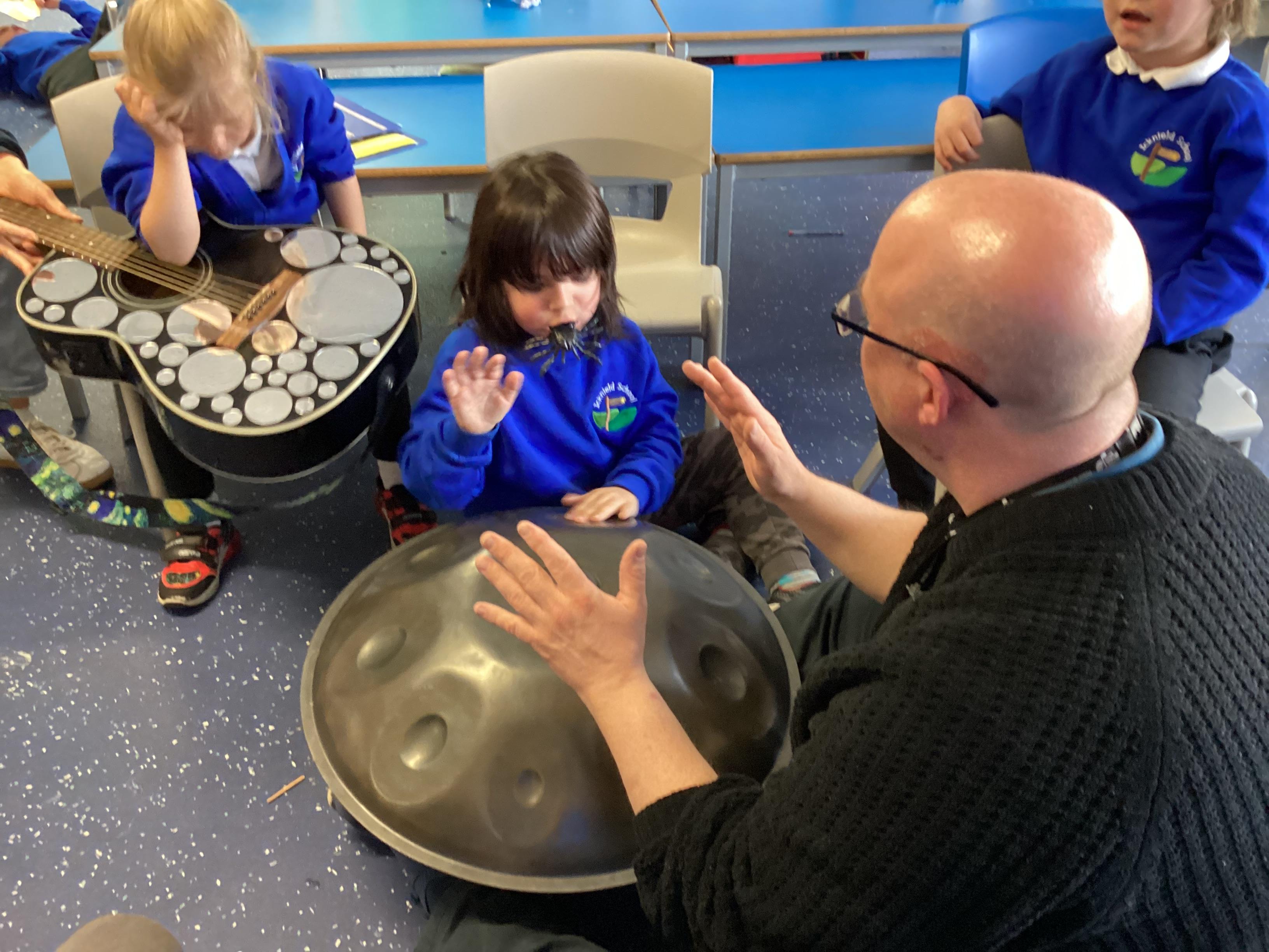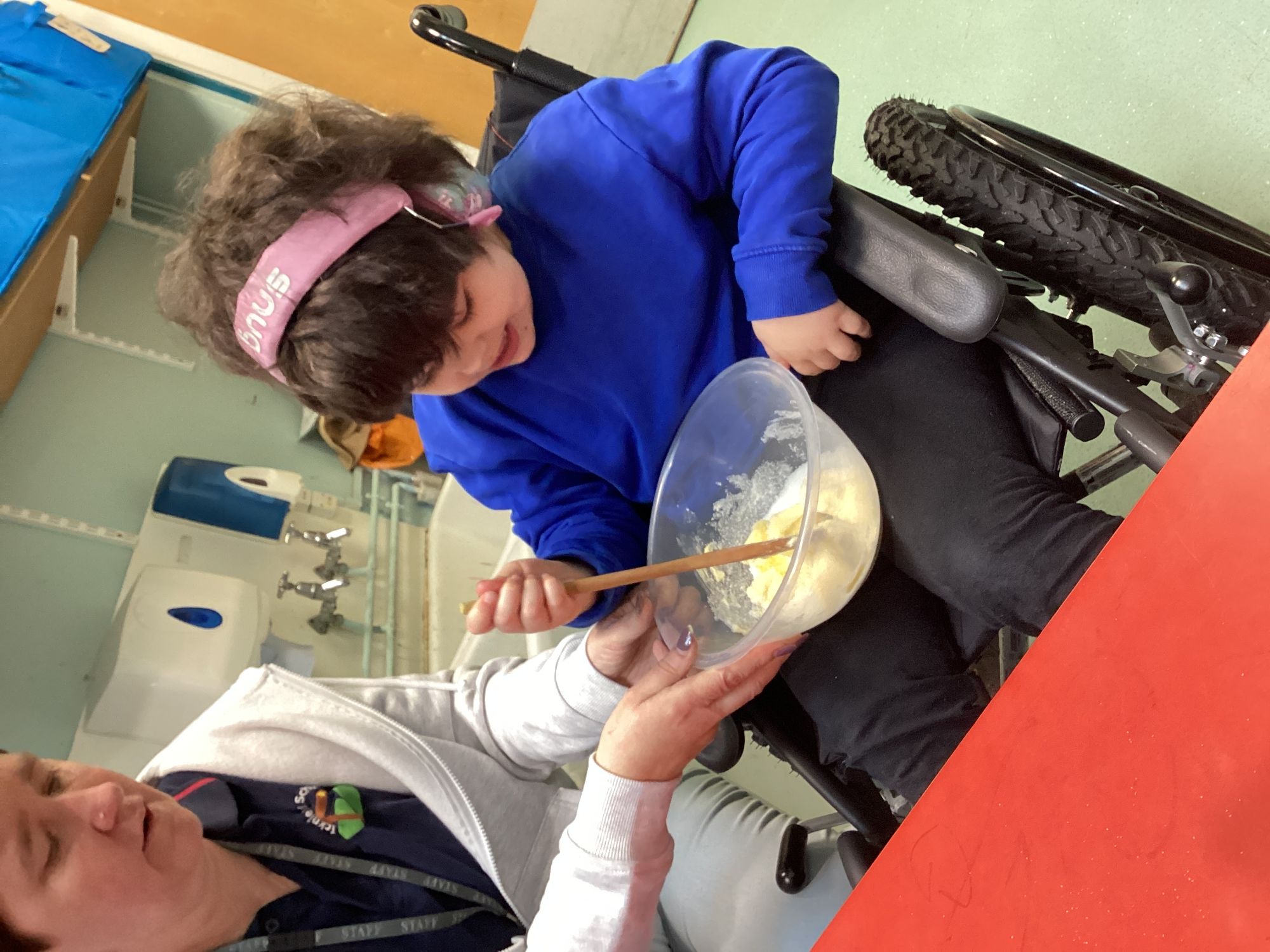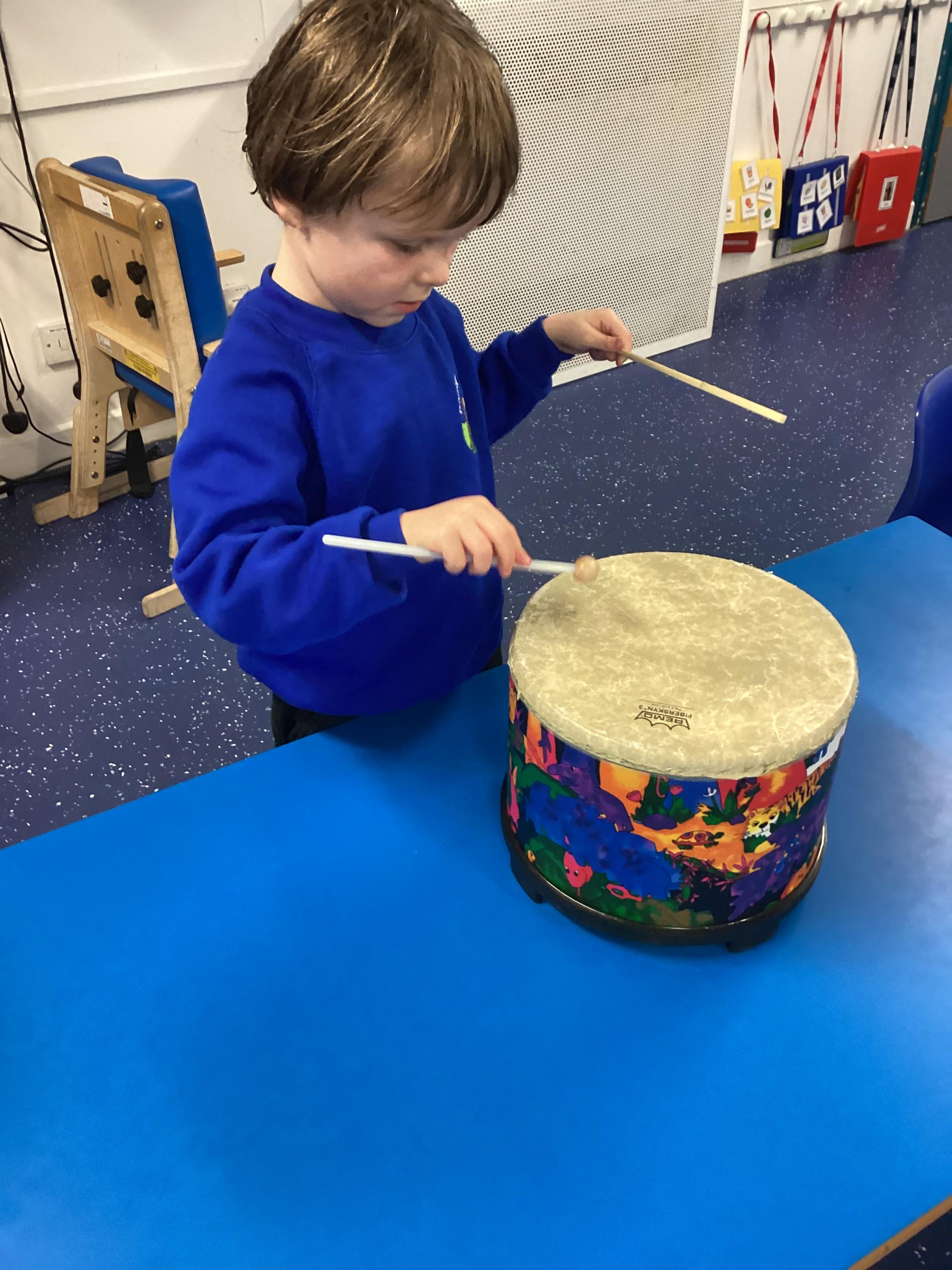 We have a fantastic outdoor learning environment just for Drum Class which we use throughout the day, come rain or shine! We work hard on being as independent as possible in all areas and putting on appropriate clothing is part of this. We go out in the community, experiencing shops, cafes, local parks and other places of interest. In school we love to use the Sensory Room, Soft Play, Messy area and Cooking room.